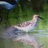 栗腹文鸟:小型鸟类,体长10-12厘米。嘴蓝灰色,基部粗厚,先端尖、呈圆锥状, 脚亦为蓝灰色,整个头、颈和上胸黑色,其余体羽栗色,或下胸和腹中央至尾下覆羽黑色。尾栗红色。全部>>