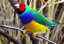 七彩文鸟是梅花雀科、鹦雀属鸟类。头部羽色有黑、红、黄之别。幼鸟体色初期为灰色,下部较淡,腹白;背部为橄榄绿,胸部呈葡萄色,成熟后面部会变成红色或黄色。雄性背部绿色,紫色胸前有圆形或椭圆形斑块,…全部>>