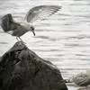 灰翅鸥,夏羽头、颈、腰、尾白色;肩、背和翅上覆羽鸽灰色。冬羽和夏羽相似,但头和颈具淡褐色纵纹,有时扩展至上胸。嘴黄色,下嘴先端具红斑;幼鸟嘴黑色。脚粉红色。栖息于海岸:悬岩,海滨沙滩于近海海岛上。常…全部>>