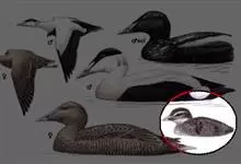 灰背鸥大型水鸟,体长62~69厘米。嘴直,黄色,下嘴先端有红色斑。脚粉红色,头、颈和下体白色,背、肩和翅黑灰色,腰,尾上覆羽和尾白色。冬季头和上胸有褐色纵纹,特别是眼周和后枕较密。飞翔时翅前后缘白色…全部>>