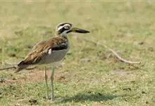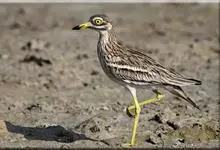 石鸻,是石鸻科、石鸻属的中型涉禽,体长40-45厘米。嘴粗厚、尖端黑色,基部黄色。脚长而粗、黄色,3趾,后趾缺失。上体淡沙灰褐色具黑褐色纵纹,前额和眼先白色。眼特别大、黄色,其外有一窄的黑圈,…全部>>