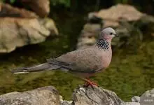 珠颈斑鸠,别名花斑鸠、珍珠鸠、花脖斑鸠、鸪鹪,是鸠鸽科副斑鸠属鸟类。体型中等,体长27~34cm,体重120~205g,雌鸟和雄鸟羽色相似,但雌鸟不如雄鸟羽色亮泽。珠颈斑鸠前额至头顶羽色稍淡,…全部>>