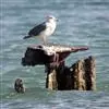 灰背鸥大型水鸟,体长62~69厘米。嘴直,黄色,下嘴先端有红色斑。脚粉红色,头、颈和下体白色,背、肩和翅黑灰色,腰,尾上覆羽和尾白色。冬季头和上胸有褐色纵纹,特别是眼周和后枕较密。飞翔时翅前后缘白色…全部>>