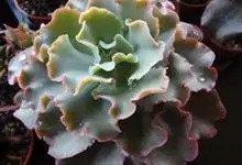 女王花笠,又名扇贝石莲花、女王花舞笠,是景天科拟石莲花属的多肉植物。由美国加利福尼亚州的育种师Dick Wright于1964年培育。特征是呈大波浪状褶皱的红色叶缘和气质高贵的粉紫色调。…全部>>
