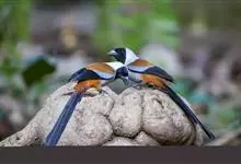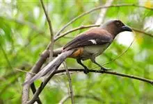 棕腹树鹊是鸦科、树鹊属中型鸟类,体长35-45厘米。整个头、颈、颏、喉至上胸烟灰褐色,其余上、下体羽棕褐色或黄褐色,翅上有一大的白色翅斑,飞翔时尤为明显。尾长、灰色具宽阔的黑色端斑。特征极明显,容易…全部>>
