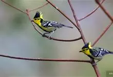 冕雀:共有4个亚种。体长20-21厘米,体重34-49克。具蓬松的黄色长型冠羽。雌鸟似雄鸟,但喉及胸深橄榄黄色,上体沾橄榄色。不会被误认的体大的黄色及黑色山雀。混群栖于原始林及次生林的林冠层,…全部>>