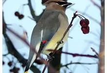 雪松太平鸟体形中等大小,体长约在19厘米左右。该物种雄雌同形同色,太平鸟成鸟额部及面部前端为栗色,向头后部颜色逐渐变浅;额基部、眼先、眼周及眼后部有黑色纹带,颌部亦有黑色区域;枕部黑色,与贯眼的黑色…全部>>