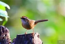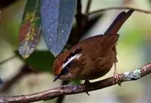 白腹幽鹛,是画眉科幽鹛属鸟类,共有4亚种。雕雄羽色相似。 上体从头到尾包括两题表面概为微椎褐色,两翅和尾沾更多红色。眼先和颚上灰褐色,耳覆羽褐色具族色羽轴纹,颈与背同色。额、喉白色具矢状黑斑,…全部>>