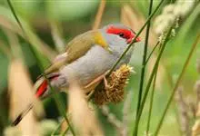 橙颊梅花雀体长约10厘米,头部灰色,两侧有大块橙色区域,嘴基及眼下方有黑纹,两条黑纹间呈白色,颊部有橙红色块斑,喙为红色至橙红色,背部及翼为褐色,腰为鲜红色,身体腹面淡灰色,腹部白色至皮黄色,…全部>>
