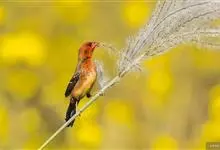 红梅花雀小型鸟类,体长9-10厘米。雄鸟通体朱红色,背、肩、胸等满布白色小斑点,两翅和尾黑褐色均具白色端斑,嘴红色,脚蜡黄色。雌鸟上体淡褐色或赭褐色,翅上中覆羽、大覆羽和内侧飞羽末端具白色斑点,…全部>>