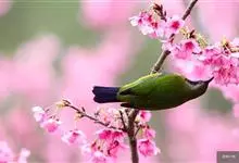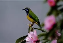 蓝翅叶鹎:小型鸟类,体长15-18厘米。雄鸟通体草绿色,尾蓝绿色,肩和翅亮蓝 色,胸缀有黄色,颏、喉黑色。雌鸟颏,喉蓝绿色。栖息在海拔1500米以下的常绿阔叶林、次生林和林缘疏林灌丛中。…全部>>