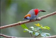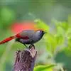 赤尾噪鹛中型鸟类,体长24~28厘米。头顶至后颈红棕色,两翅和尾鲜红色,眼先、眉纹、颊、颏和喉黑色,眼后有一灰色块斑。其余上下体羽大都暗灰或橄榄灰色。特征极明显,特别是通过鲜红色的头顶、翅和尾。…全部>>