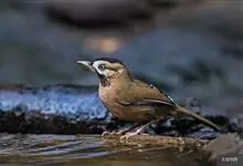 白颊噪鹛是雀形目噪鹛科噪鹛属鸟类,又称土画眉、小画眉、小噪鹃。成鸟额至头顶栗褐色,长眉纹、眼先和颊纹棕白色,眼后至耳羽深褐色,…全部>>