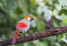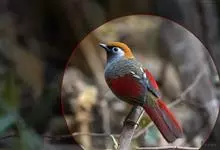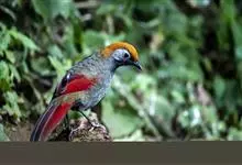 赤尾噪鹛中型鸟类,体长24~28厘米。头顶至后颈红棕色,两翅和尾鲜红色,眼先、眉纹、颊、颏和喉黑色,眼后有一灰色块斑。其余上下体羽大都暗灰或橄榄灰色。特征极明显,特别是通过鲜红色的头顶、翅和尾。…全部>>