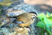 黄喉噪鹛体型略小,顶冠蓝灰色,特征为具黑色的眼罩和鲜黄色的喉。上体褐色,尾端黑色而具白色边缘,腹部及尾下覆羽皮黄色而渐变成白色。黄喉噪鹛隐匿于亚热带常绿林和浓密灌丛,于地面杂物中取食,喜食昆虫,…全部>>