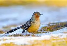大噪鹛:中型鸟类,体长32-36厘米。额至头顶黑褐色,背栗褐色满杂以白色斑点,斑点前缘或四周还围有黑色。初级覆羽、大覆羽和初级飞羽具白色端斑。尾特长,均具黑色亚端斑和白色端斑。颏、喉棕褐色,…全部>>