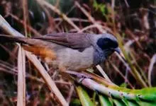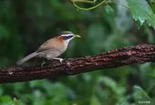 白颊噪鹛是雀形目噪鹛科噪鹛属鸟类,又称土画眉、小画眉、小噪鹃。成鸟额至头顶栗褐色,长眉纹、眼先和颊纹棕白色,眼后至耳羽深褐色,…全部>>