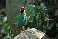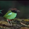 绿胸八色鸫:是雀形目八色鸫科的鸟类,共有12个亚种。体长为16-18厘米,体重65-69克。体型圆胖,尾短,腿长。头黑,上体绿色,两翼深色而具白色斑纹,头顶至后枕深褐,胸及腹部苹果绿,臀亮红。…全部>>