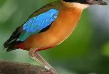 蓝翅八色鸫是雀形目八色鸫科的鸟类。体长17-20厘米,体重类约48-70克,体型圆胖,尾短,腿长,以身体具有红、绿、蓝、白、黑、黄、褐、栗等鲜艳夺目,丰富艳丽的色彩而得名,是很有观赏价值的鸟类。主要…全部>>