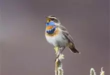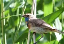 蓝点颏亦称“蓝喉歌鸲”,通称蓝靛颏儿。身体大小和麻雀相似,体长12-13厘米,体重17-18克。头部、上体主要为土褐色。眉纹白色。尾羽黑褐色,基部栗红色。颏部、喉部辉蓝色,下面有黑色横纹。下体白色。…全部>>