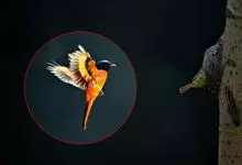 朱背啄花鸟:体重6-8克,体长81-97毫米。是一种小型的黑色及红色啄花鸟。雄鸟顶冠、背及腰猩红色,两翼、头侧及尾黑,两胁灰,下体余部白色。雌鸟上体橄榄色,腰及尾上覆羽猩红,尾黑。亚成鸟清灰色,嘴橘黄,…全部>>