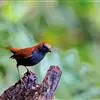 红尾歌鸲:体长13-15厘米。上体橄榄褐色。尾羽棕栗色,眼先和颊黄褐色,眼周淡黄褐色。下体颏、喉污灰白色,微沾皮黄色,胸部具橄榄色扇贝形纹,两胁橄榄灰白色,腹部和尾下覆羽与颏、喉同。尾部棕色。…全部>>