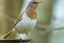 赤颈鸫是鸫科、鸫属中型鸟类,体长22-25厘米。上体灰褐色,有窄的栗色眉纹。颏、喉、上胸红褐色,腹至尾下覆羽白色,腋羽和翼下覆羽橙棕色。虹膜暗褐色,嘴黑褐色,下嘴基部黄色,脚黄褐色或暗褐色。…全部>>