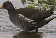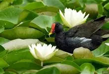 黑水鸡:是鹤形目、秧鸡科的鸟类,共有12个亚种。中型涉禽,体长24-35厘米。嘴长度适中,鼻孔狭长;头具额甲,后缘圆钝;嘴和额甲色彩鲜艳。翅圆形,第2枚初级飞羽最长,或第2枚和第3枚初级飞羽等长,…全部>>