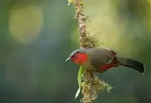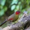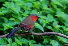 红翅薮鹛是噪眉科、薮鹛属中型鸟类,体长21-24厘米。头顶灰褐色,头侧和颈侧赤红色,上体橄榄褐色,翅上具红色块斑,尾具红色或橙黄色块斑,下体灰色沾褐。虹膜褐色或红色,嘴黑色,脚暗褐色或淡灰褐色。…全部>>