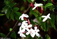 素馨花,木犀科素馨属多年生的攀援灌木植物。攀援灌木,小枝圆柱形,具棱或沟;叶对生,叶轴常具窄翼,小叶片卵形或长卵形;聚伞花序顶生或腋生,花序梗长,苞片线形,花萼无毛,裂片锥状线形,花冠白色,…全部>>