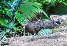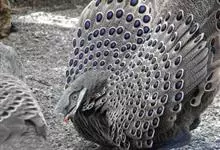 灰孔雀雉:雄鸟体长50-67厘米,体重456-710克;雌鸟体长33-52厘米,体重460-500克。雄鸟全身羽毛黑褐色,…全部>>