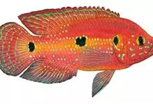 红魔鬼鱼(火鹤鱼、红魔鬼)鲈形目 > 慈鲷科 > 双冠丽鱼属 > 红魔鬼鱼
