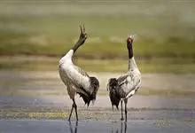 黑颈鹤:是鹤科、鹤属的大型涉禽,体长110-120厘米,体重4-6千克。颈、脚甚长,通体羽毛灰白色,头部、前颈及飞羽黑色,眼先和头顶前方裸露的皮肤呈暗红色,尾羽褐黑色。头顶,三级飞羽的羽片分散,…全部>>