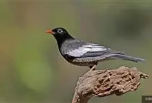 灰翅鸫是鸫科、鸫属中型鸟类。体长26-29厘米。雄鸟通体黑色,翅上具大而明显的淡灰色翼斑,在黑色体羽的衬托下极为醒目。腹至尾下覆羽具银灰色羽缘,形成明显的银灰色鳞状斑。嘴橙黄色,眼周黄色。…全部>>