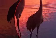 丹顶鹤:是鹤科、鹤属的一种大型涉禽,体长120-160厘米。颈、脚较长,通体大多白色,头顶鲜红色,喉和颈黑色,耳至头枕白色,脚黑色,站立时颈、尾部飞羽和脚黑色,头顶红色,…全部>>