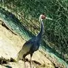 东非冕鹤是大型涉禽。体长127厘米。额部向外凸出,有乌黑色绒羽,枕部有由无数条土黄色绒丝向四周放射所形成的绒球状冠羽。眼睛后方的面颊有上红下白的斑块。颈长。喉部有红色肉垂。体羽主要为浅蓝灰色,…全部>>