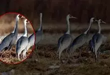 白枕鹤体形与丹顶鹤相似,略小于丹顶鹤,而大于白头鹤。上体为石板灰色。尾羽为暗灰色,末端具有宽阔的黑色横斑。取食时主要用喙啄食,或用喙先拨开表层土壤,然后啄食埋藏在下面的种子和根茎,边走边啄食。…全部>>