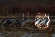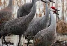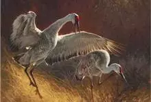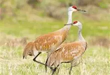 沙丘鹤别名棕鹤、加拿大鹤,是鹤形目鹤科鹤属大型涉禽。成鸟两性相似,雌鹤略小,眼先、前额和头顶裸露部分红色;上体石板灰色,翅覆羽较淡,羽缘锈棕色,羽轴深黑色;尾羽石板灰色,颈部灰蓝色,…全部>>