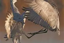 沙丘鹤别名棕鹤、加拿大鹤,是鹤形目鹤科鹤属大型涉禽。成鸟两性相似,雌鹤略小,眼先、前额和头顶裸露部分红色;上体石板灰色,翅覆羽较淡,羽缘锈棕色,羽轴深黑色;尾羽石板灰色,颈部灰蓝色,…全部>>