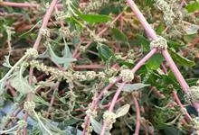 反枝苋是苋科苋属的一年生草本植物。株高达1米;茎密被柔毛;叶菱状卵形或椭圆状卵形,先端锐尖或尖凹,两面及边缘被柔毛,下面毛较密;穗状圆锥花序,顶生花穗较侧生者长;花被片长圆形或长圆状倒卵形,…全部>>