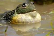 牛蛙,是蛙科、牛蛙属的养殖水产品动物,鸣声很大,远闻如牛叫而得名。牛蛙个体硕大,雌蛙体长达20厘米,雄蛙18厘米,最大个体可达2千克以上。头部宽扁,口端位,吻端尖圆面钝眼球外突,分上下两部分,…全部>>