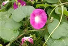 五爪金龙 Sweet),旋花科番薯属多年生缠绕草本植物。茎细长,有细棱;叶片为掌状;花冠紫红色、紫色或淡红色、偶有白色,漏斗状;蒴果近球形。花期5~12月。五爪金龙的叶子类似掌状,有5至7个裂痕,…全部>>
