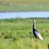 白枕鹤体形与丹顶鹤相似,略小于丹顶鹤,而大于白头鹤。上体为石板灰色。尾羽为暗灰色,末端具有宽阔的黑色横斑。取食时主要用喙啄食,或用喙先拨开表层土壤,然后啄食埋藏在下面的种子和根茎,边走边啄食。…全部>>