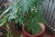 番木瓜,番木瓜科番木瓜属的常绿软木质小乔木,高达10米,具有乳汁;茎不分枝或有时于损伤处分枝;叶大且聚生于茎顶,近似盾形,叶柄中空;花单性或两性,有些品种雄株偶尔生两性花或雌花,…全部>>