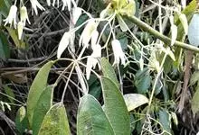 野木瓜是木通科野木瓜属的常绿木质藤本植物。茎干时呈灰褐色或褐色;小叶呈长圆形、长圆状披针形或倒卵状椭圆形;总花梗纤细,花淡黄或乳白色,内面有紫斑,雄蕊退化花瓣椭圆形,雌蕊圆锥形,柱头乳头状;果椭圆形,…全部>>