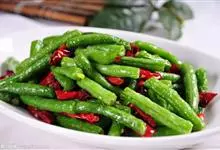干煸豆角是用四季豆制作作为主要食材,以酱油、香油、味精、醋作为调料制作而成的一道家常菜。口味咸香辣,色泽嫩绿,口感脆嫩,营养丰富。豆角中的纤维有利于降低人体内的胆固醇,…全部>>
