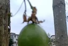 铁西瓜为紫葳科、葫芦树属的常绿小乔木,高5~18米,为典型的热带雨林“老茎生花”植物。其花、果单生于小枝或老茎上;花冠钟形,淡绿黄色,具褐色脉纹,春夏开花。全部>>
