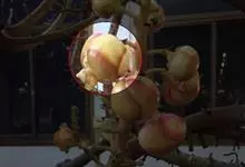 铁西瓜为紫葳科、葫芦树属的常绿小乔木,高5~18米,为典型的热带雨林“老茎生花”植物。其花、果单生于小枝或老茎上;花冠钟形,淡绿黄色,具褐色脉纹,春夏开花。全部>>