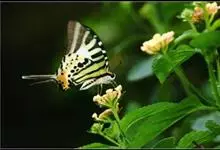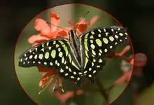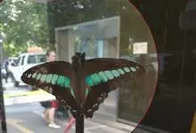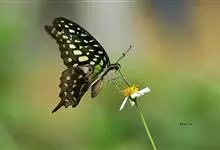 青带凤蝶Graphium sarpedon ,又名青凤蝶,是最普遍的中型凤蝶,飞行速度很快。青带凤蝶的翅膀中央有许多浅蓝色的斑点,很整齐地排列成一条直线。这些斑点由上而下逐渐变大,就像一条青色的带子。全部>>