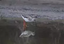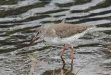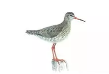 红脚鹬:体长28厘米,上体褐灰,下体白色,胸具褐色纵纹。飞行时腰部白色明显,次级飞羽具明显白色外缘。尾上具黑白色细斑。虹膜黑褐色,嘴长直而尖,基部橙红色,尖端黑褐色。脚较细长,亮橙红色,…全部>>